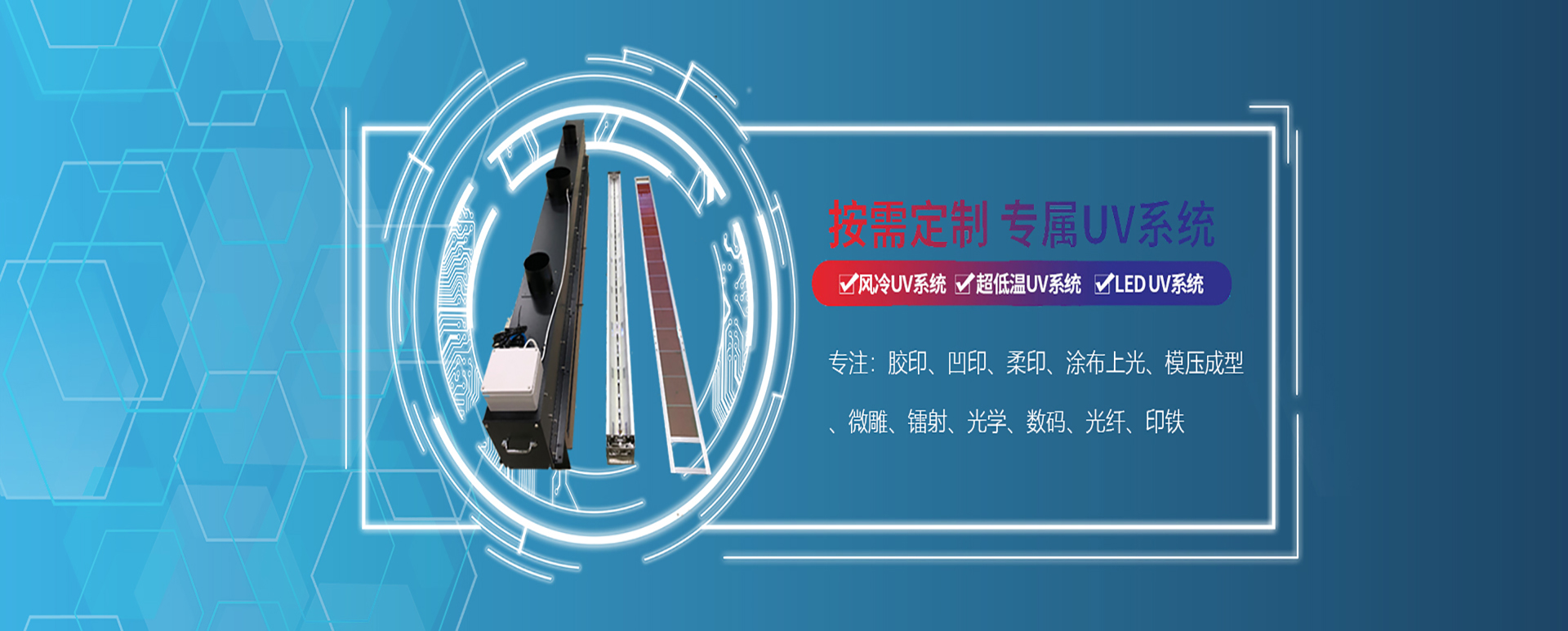 本公司自行设计、制造、销售工业用途UV灯、工业用途UV灯固化系统及周边部件。同时和国外知名UVLED 品牌拥有良好合作关系。 公司凭借专业的技术团队和完善的售后服务,坚持以客户的利益为中心,努力帮助客户降低生产成本,提高产品的品质和生产效率、奉行"质量第一,信誉第一"的原则,以人才、技术、质量、效率竭力满足国内各制造行业日新月异的发展需要。